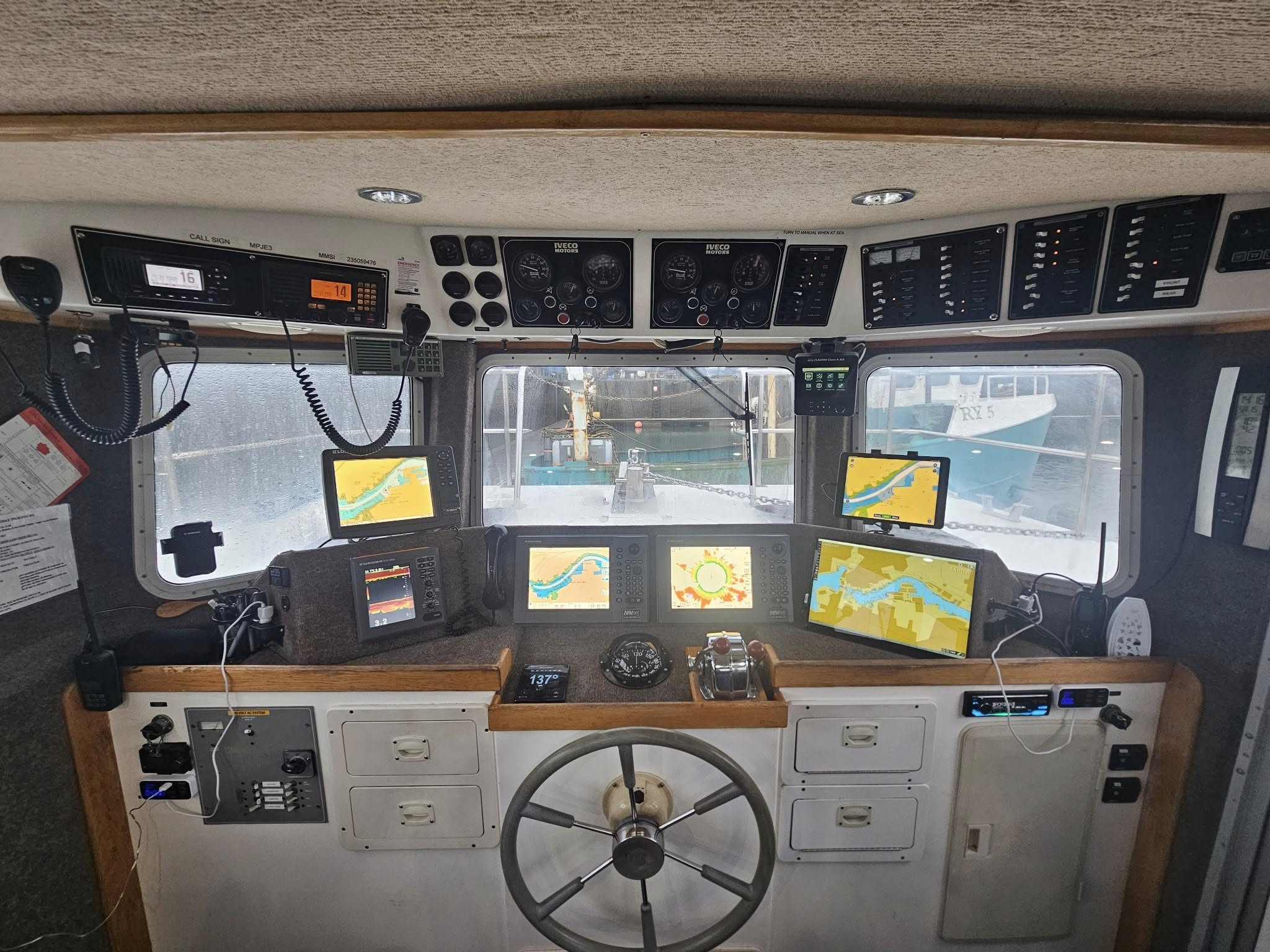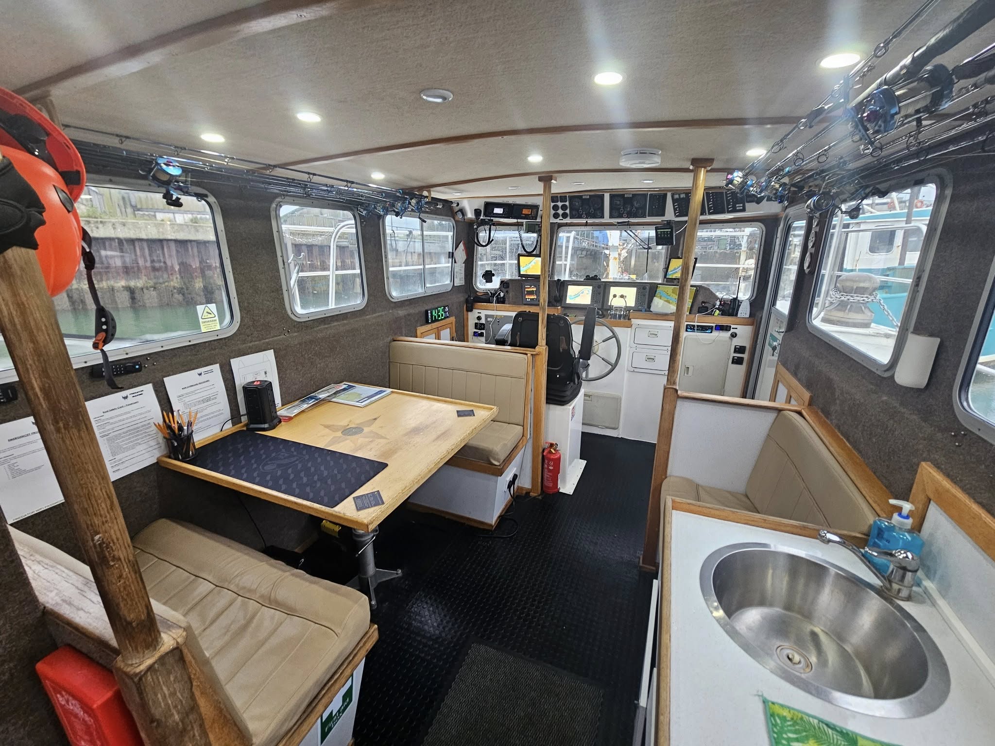 Her heated cabin is equipped with state-of-the-art navigation systems and provides a comfortable, functional workspace for crew and equipment alike.